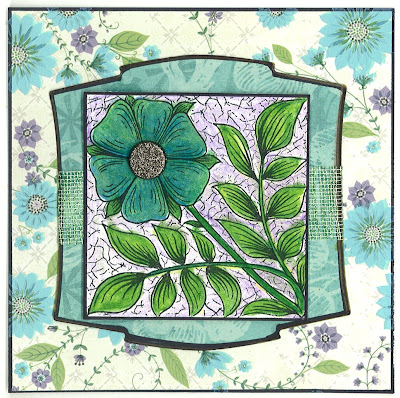 It is not my best work, but I like the colors, the flowers and the glitz and have decided it is just fine as is. Tomorrow you will see another card where I tried that flourish again.